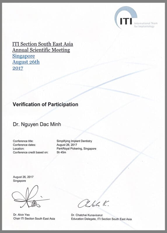 - Thành viên Hiệp hội Implant Thụy Sĩ – ITI