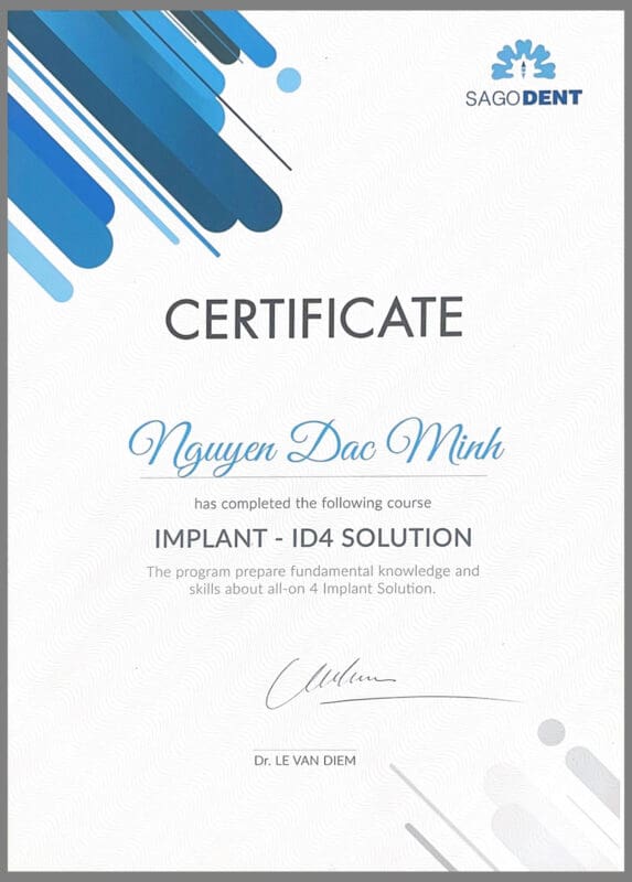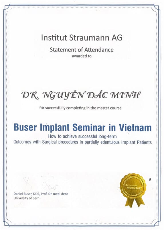 - Chứng chỉ Cấy Ghép Nha Khoa từ Bệnh Viện Răng Hàm Mặt Trung Ương
