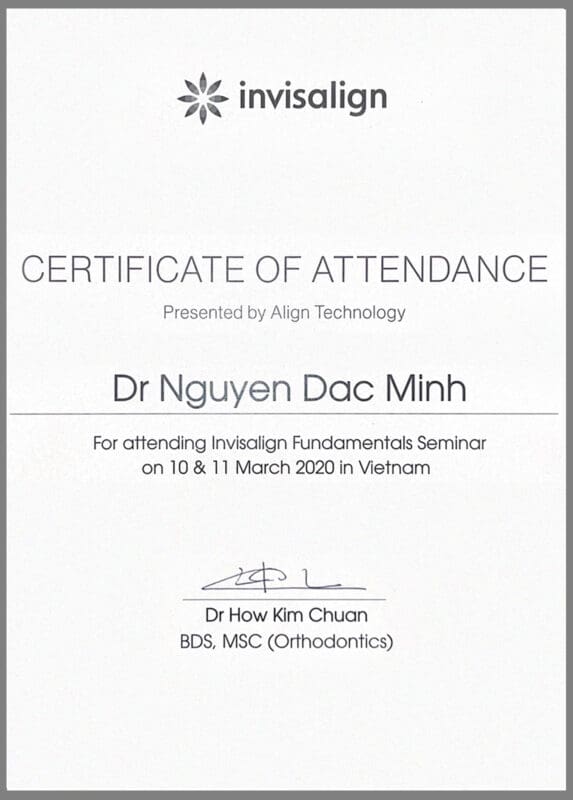 Bác sĩ Nguyễn Đắc Minh tốt nghiệp hệ chính quy chuyên khoa Răng Hàm Mặt, hiện đang công tác tại Nha Khoa Flora. Trong suốt quá trình đào tạo và phát triển, bác sĩ Đắc Minh đã không ngừng trau dồi kiến thức. Từ đó, bác sĩ đã đạt được nhiều chứng chỉ giá trị: